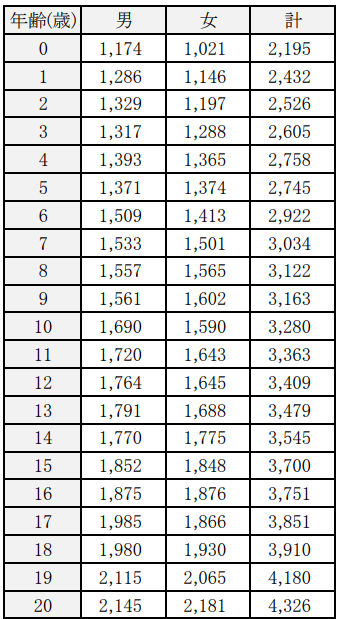 年齢別性別人口表(1歳階級)2025年12月1日(※枚方市HPより引用)