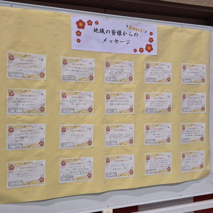 地域分散方式の良さは、家族や地域、関係者の皆さんが身近な場所で一緒にお祝いできる点にあります。地域に見守られ、支えられてきたことを実感できる、あたたかな式典でした。