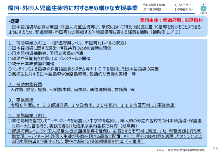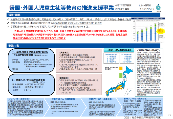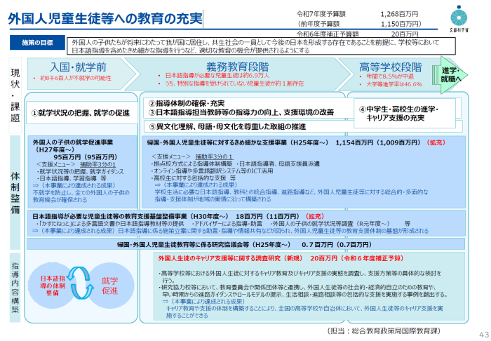 ▶ 外国人児童生徒等教育の現状と課題(2025年8月/文部科学省)