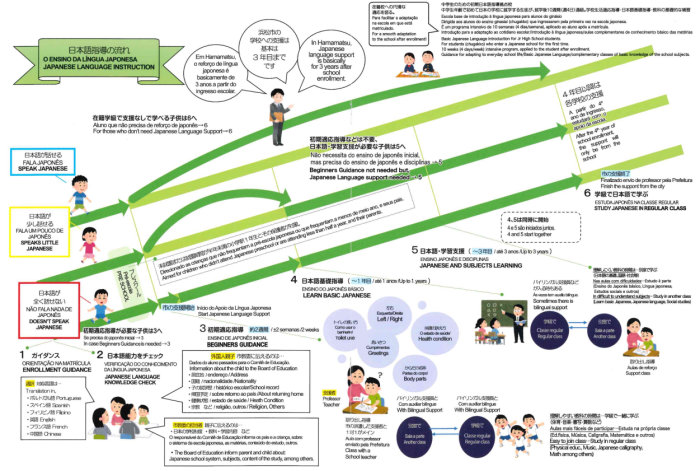 浜松市では、中学生年齢で初めて日本の学校に就学する生徒が通級する「初期日本語指導拠点校」を設置している。また、西成区では、地域の支援団体と学校が連携し、放課後に小学校内で日本語教室を開設し、子どもの学びを支えている。