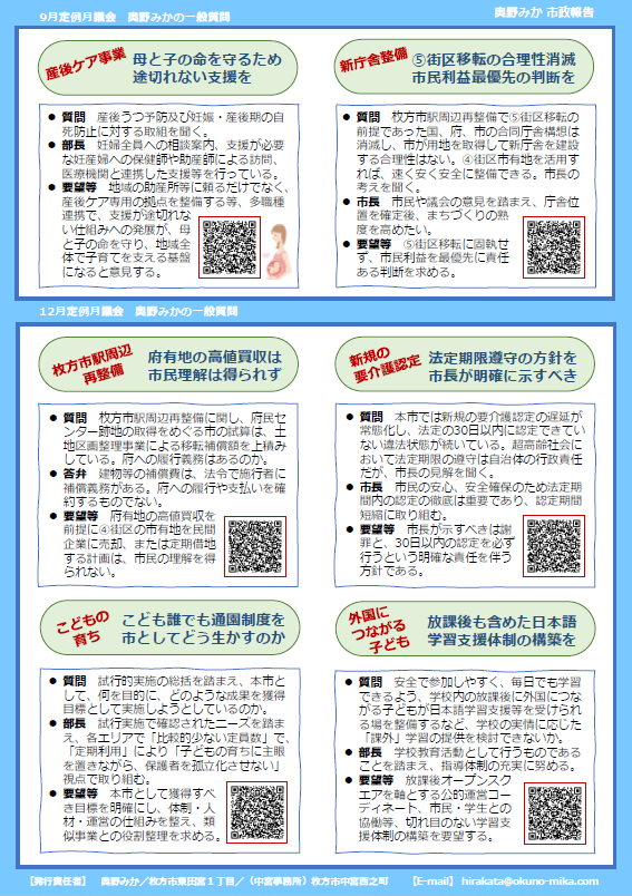 本号では、9月から12月の議会における質疑などを報告しています。お読みいただき、ご意見・ご感想などをお寄せいただければ幸いです。よろしくお願いいたします。