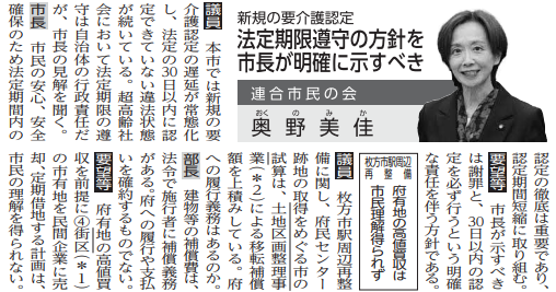 「新規の要介護認定 法定期限遵守の方針を市長が明確に示すべき」