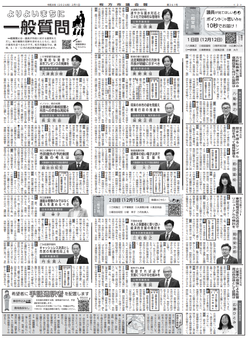 枚方市議会報第361号(2026年2月1日号)が発行されました。12月定例月議会での私の一般質問の内容も掲載されています。