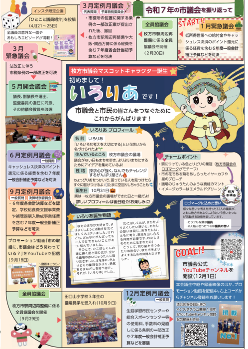 枚方市議会マスコットキャラクター「いろりあ」について、議会報(第360号)で紹介されていました。